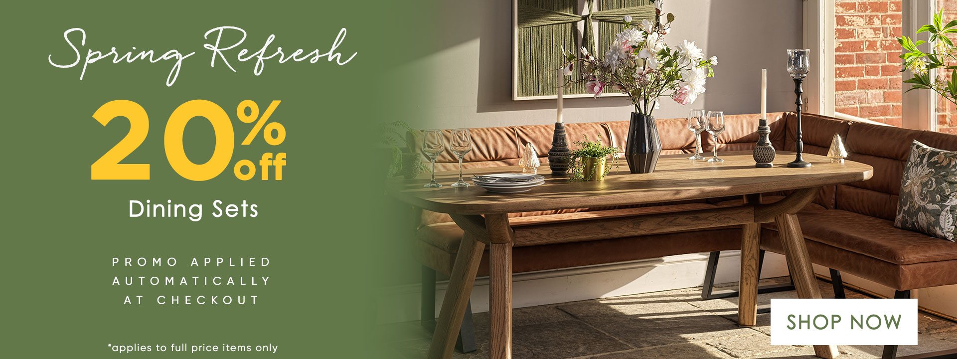 We offer a huge choice of dining sets where beautiful tables and a great choice of chair styles, colours and benches are combined to make the perfect dining space for your home. Explore our dining sets to find your favourite.