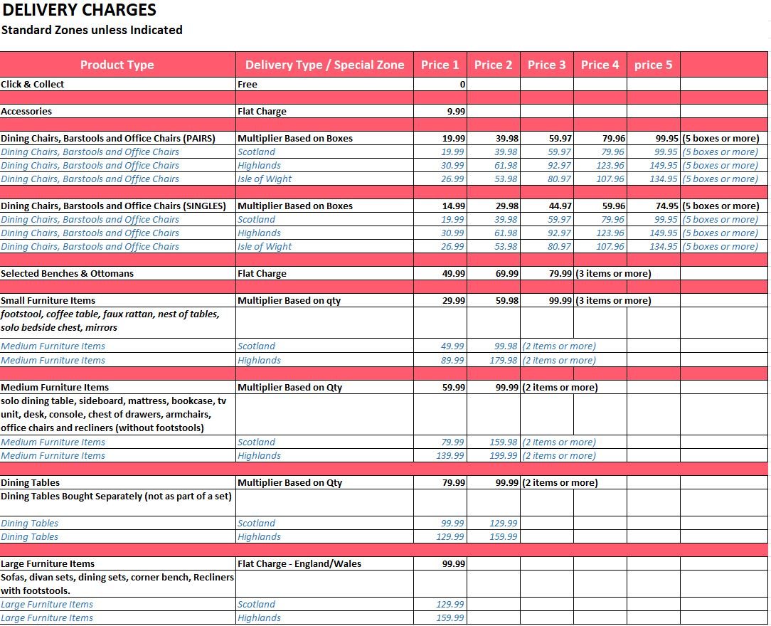 Please note specific delivery charges for each product can be found on the product's web page under "Delivery & Collection".