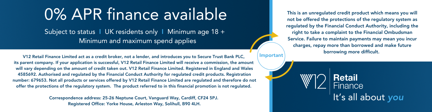 You will be taken through to the V12 retail finance platform where your decision will be made instantly. A confirmation email will then be sent to you, where you will be asked to complete your agreement by E-signature.